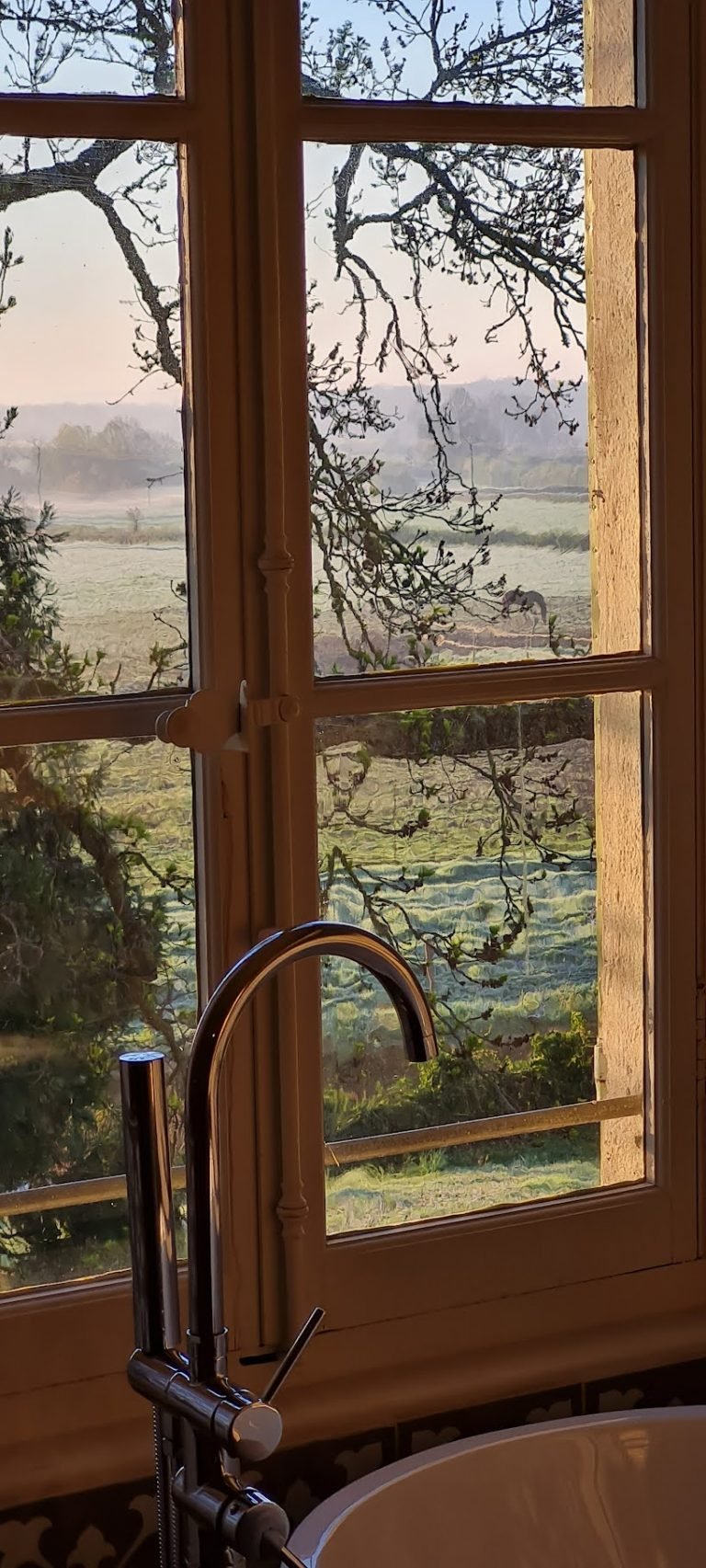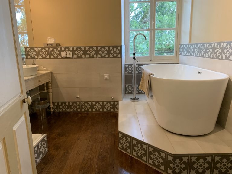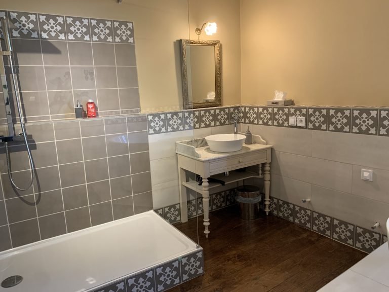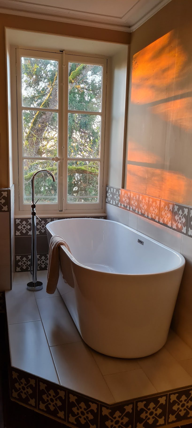 Une salle de bain unique : véritable pièce à part entière, elle est équipée d’une baignoire îlot, installée face à une fenêtre donnant sur un majestueux frêne où s’ébattent souvent des écureuils. Une grande douche complète cet espace, sous le regard imposant de Napoléon sur son cheval cabré. Les WC séparés assurent un confort optimal.