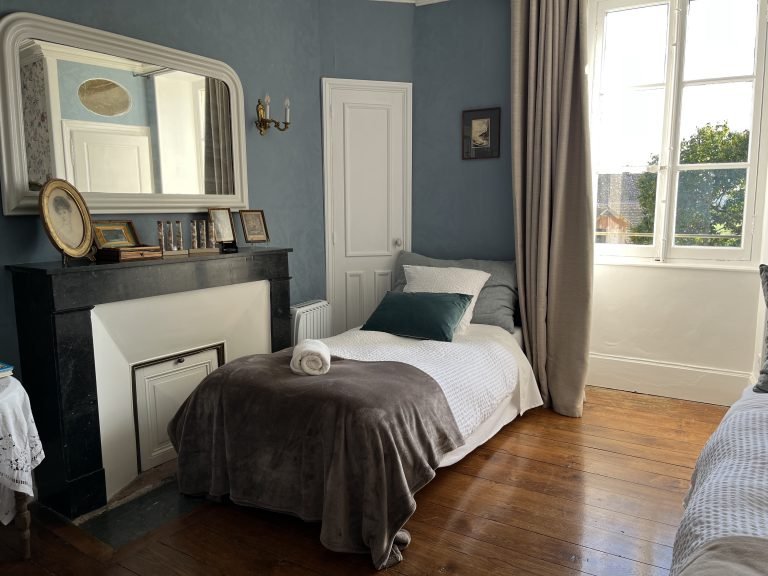 La deuxième chambre / salon : modulable selon vos envies, elle dispose de deux lits simples (80×200 cm) qui peut se transformer en 1 lit double de 160, de fauteuils crapaud, d’une commode, d’une cheminée et d’une fenêtre sur cour. Un petit réduit abrite un espace dédié à la préparation de cafés, thés ou tisanes.